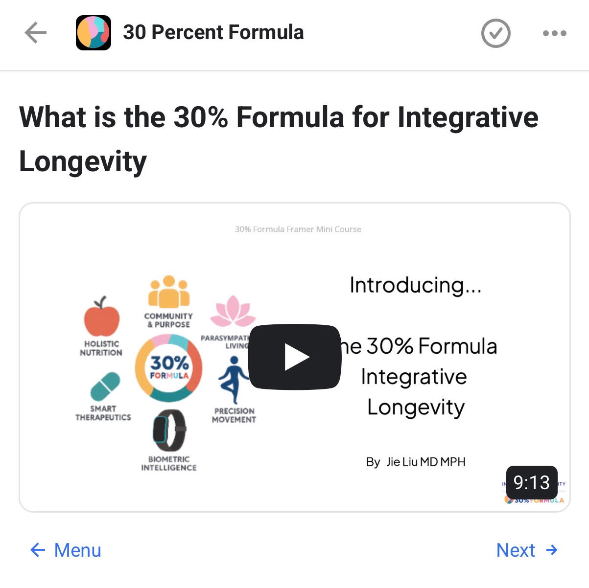 Get access to the 30% Formula™ Integrative Longevity Framer Course — 6 Anchors for building habits that last a lifetime just by signing up for the Premium 30% Formula membership for only $8 a month.